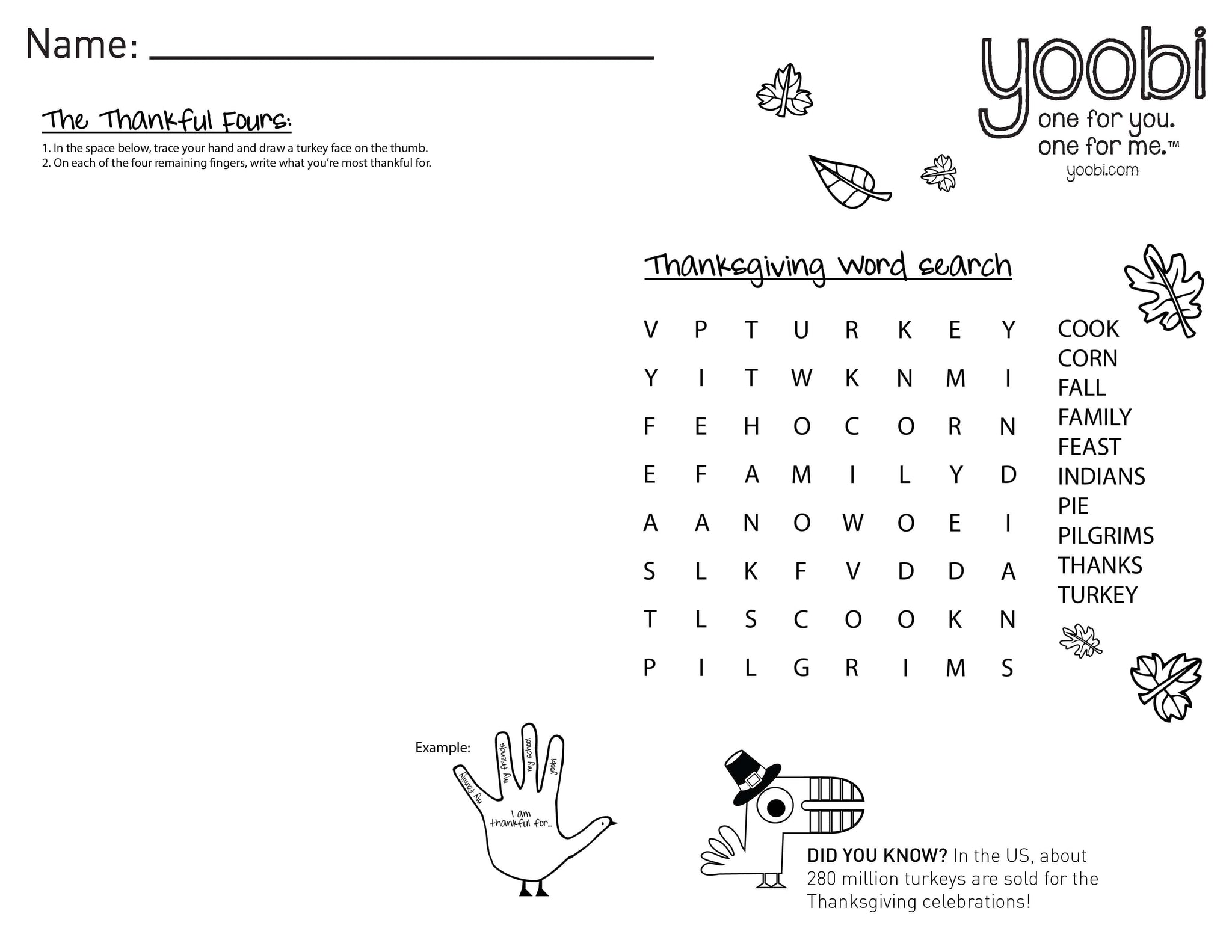 Click the images to download Yoobi's Thanksgiving Activity Sheets!