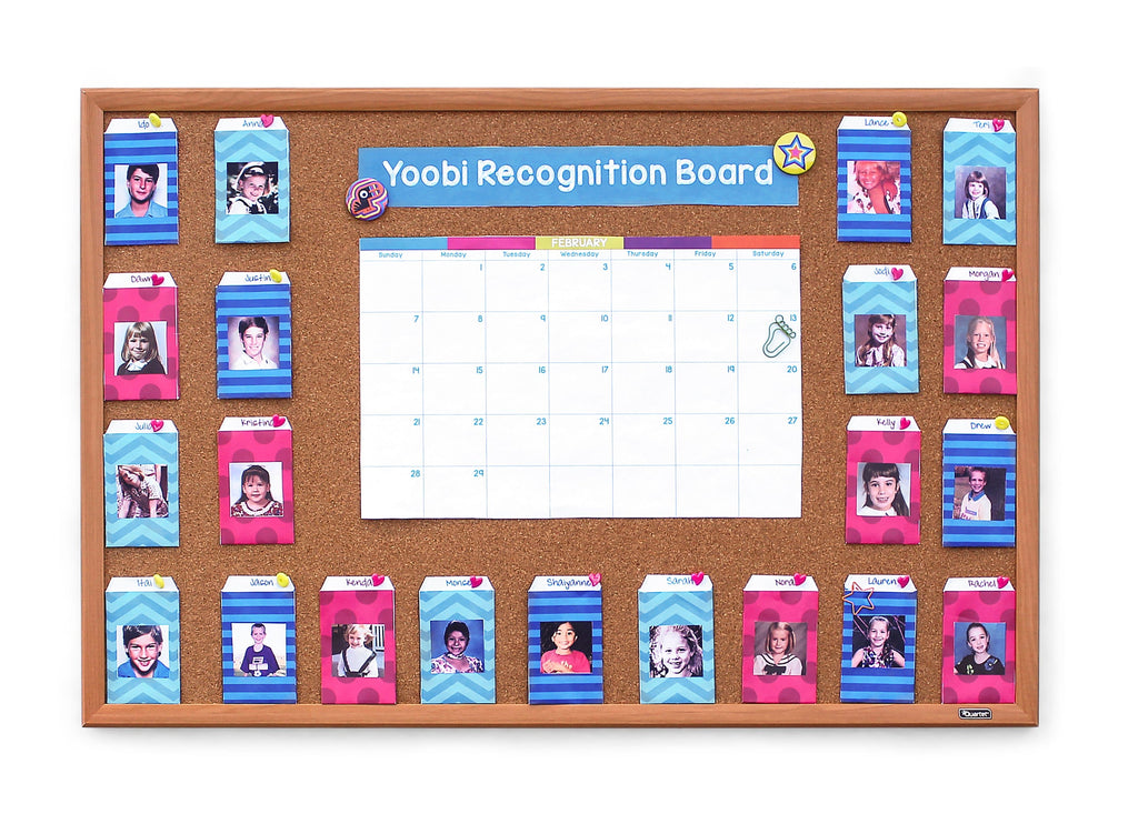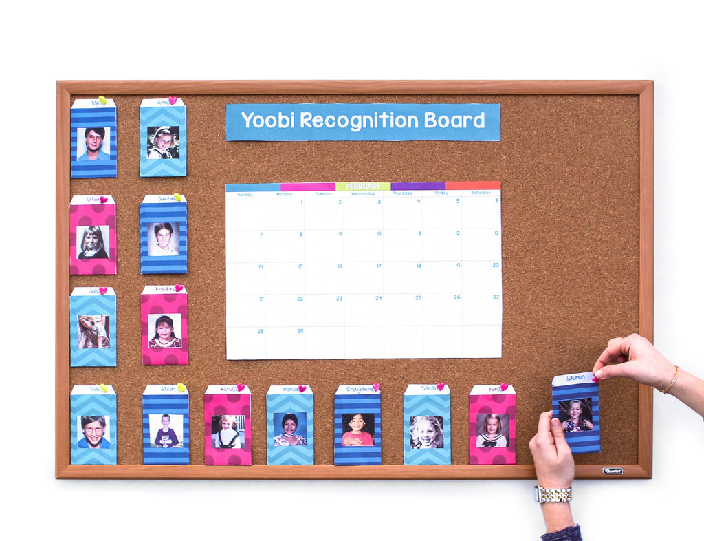Each team member has their own pocket to capture notes and affirmations from other team members. By downloading the Yoobi calendar and pocket templates, you too can integrate color and organization into the classroom.
