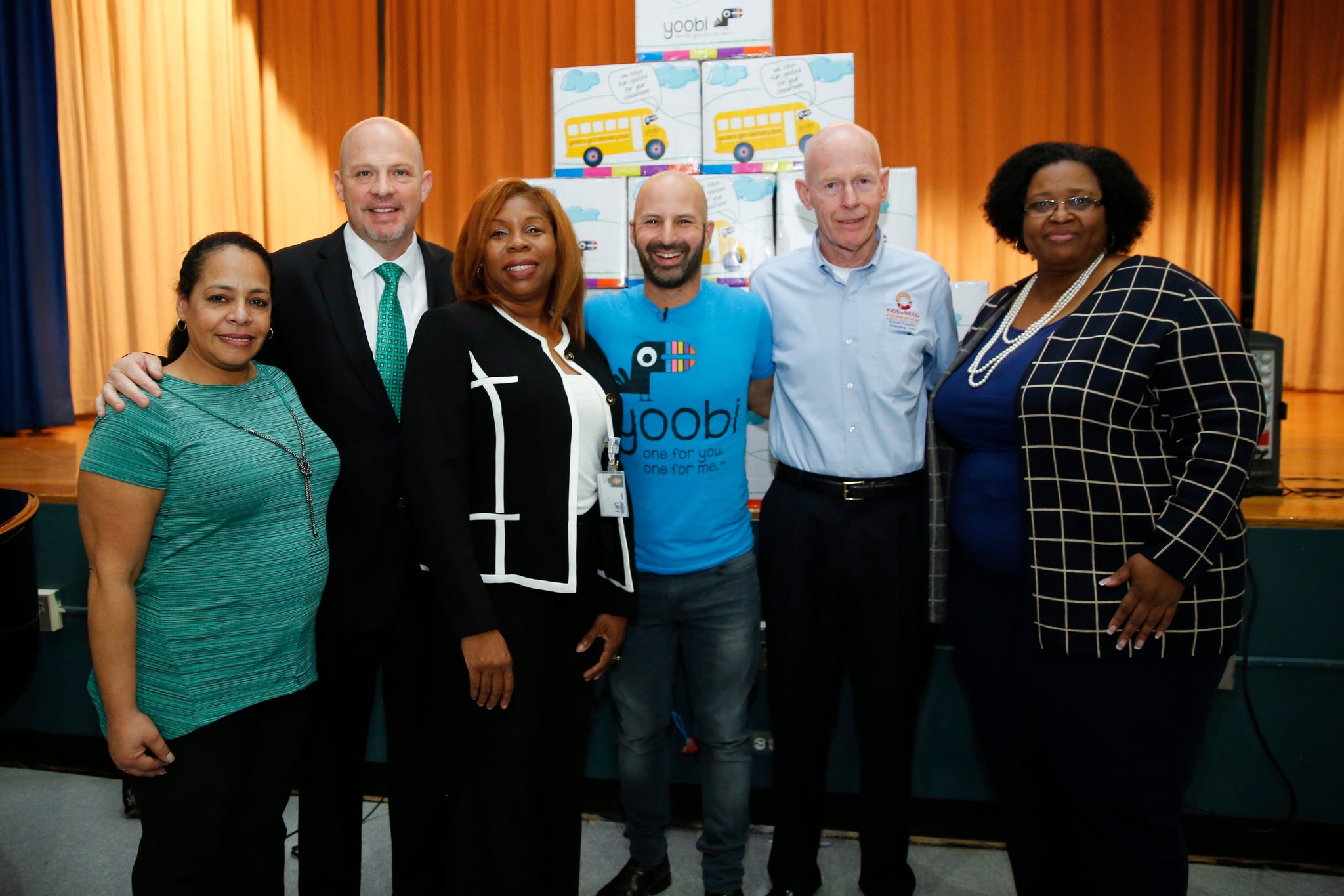 Following the announcement at the morning assembly, the teams gathered up and went to classrooms to kick off the big give and start handing out the first of 1100 Yoobi Classroom Packs that are set to be distributed to schools across the 5 Boroughs.