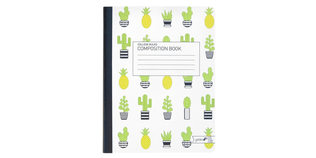 - Cactus and Pineapple Composition Book: Yoobi is bringing back composition books, brighter and better than ever! Take notes in this fun, fruity, desert-inspired comp book!
