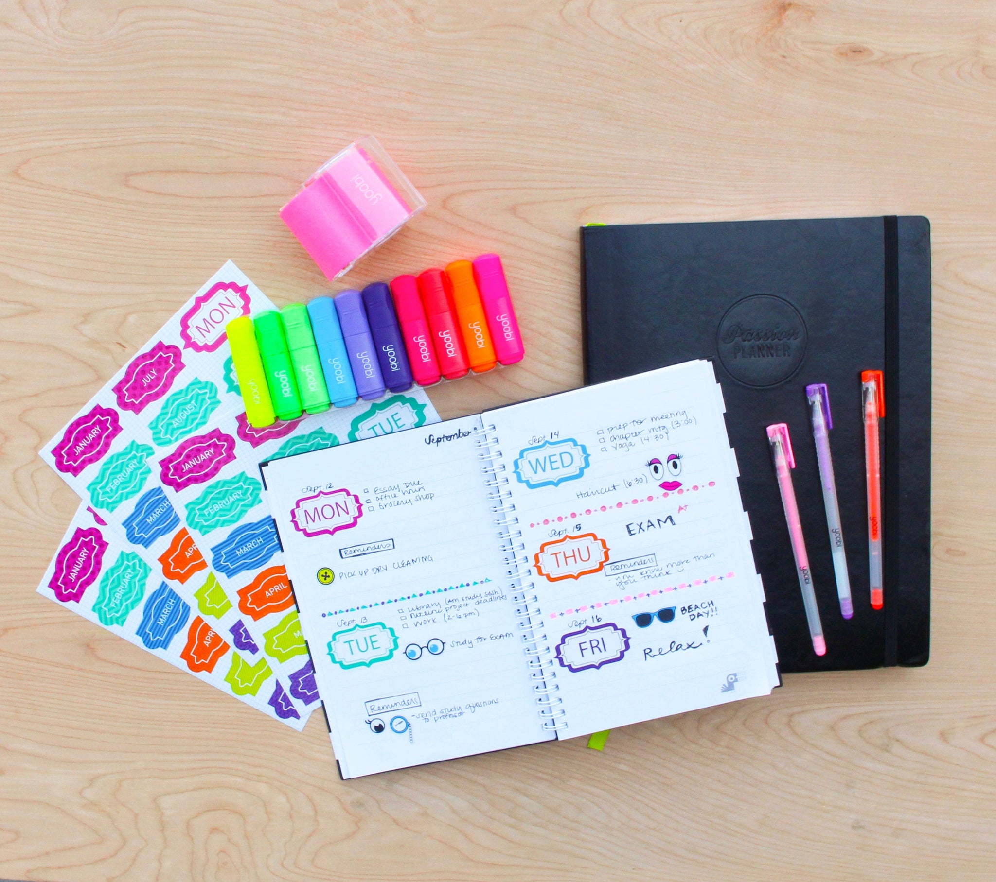 The first place to start is with your tools - no planner is complete without a pack of gel pens to color coordinate or decorate. Start with Yoobi’s 12 pack or (better yet) 24 pack of gel pens to make sure you have all the colors you need! Some people like to write all their work reminders in one color and their personal reminders in another color. Paydays should be marked with green dollar signs, and your bills due dates should be marked with a red check mark.