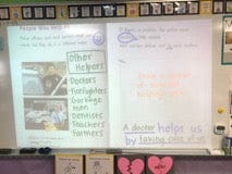 Whenever Ms. Nettleton uses the Elmo or whiteboard in her classroom and expects students to write notes or follow along in a workbook or worksheet, she uses different colored markers.