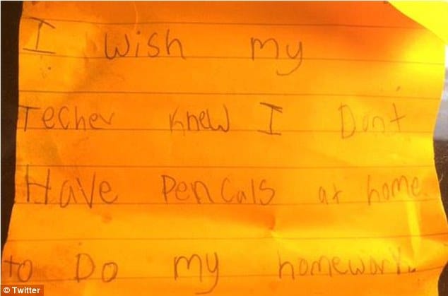 “It should make headline news that there are so may dedicated students who do not have pencils at home, but it doesn’t. There should be outrage that many American children attend schools that lack the necessary resources to teach them.”