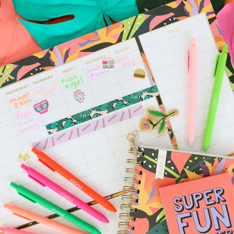 If there's one thing we have in common, it's that we're all juggling new responsibilities this season and more responsibilities require additional planning. Pencil in virtual meetings, mental health breaks and project deadlines, all in one place. Shop our Birds of Paradise, Undated Weekly Calendar Notepad  and our Super Fun Planner Sticker Book .