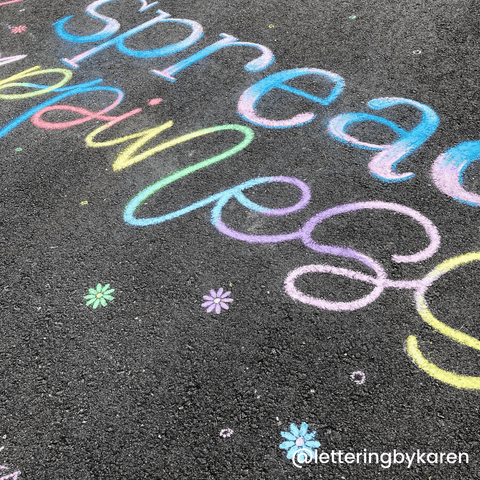 Be sure to grab our colorful sidewalk chalk, washable paint, and stencils to create the masterpiece of your dreams... in the sunshine! One of our good friends, @letteringbykaren, celebrated Week 4 of Camp Yoobi by creating her awesome chalk-art masterpiece below!